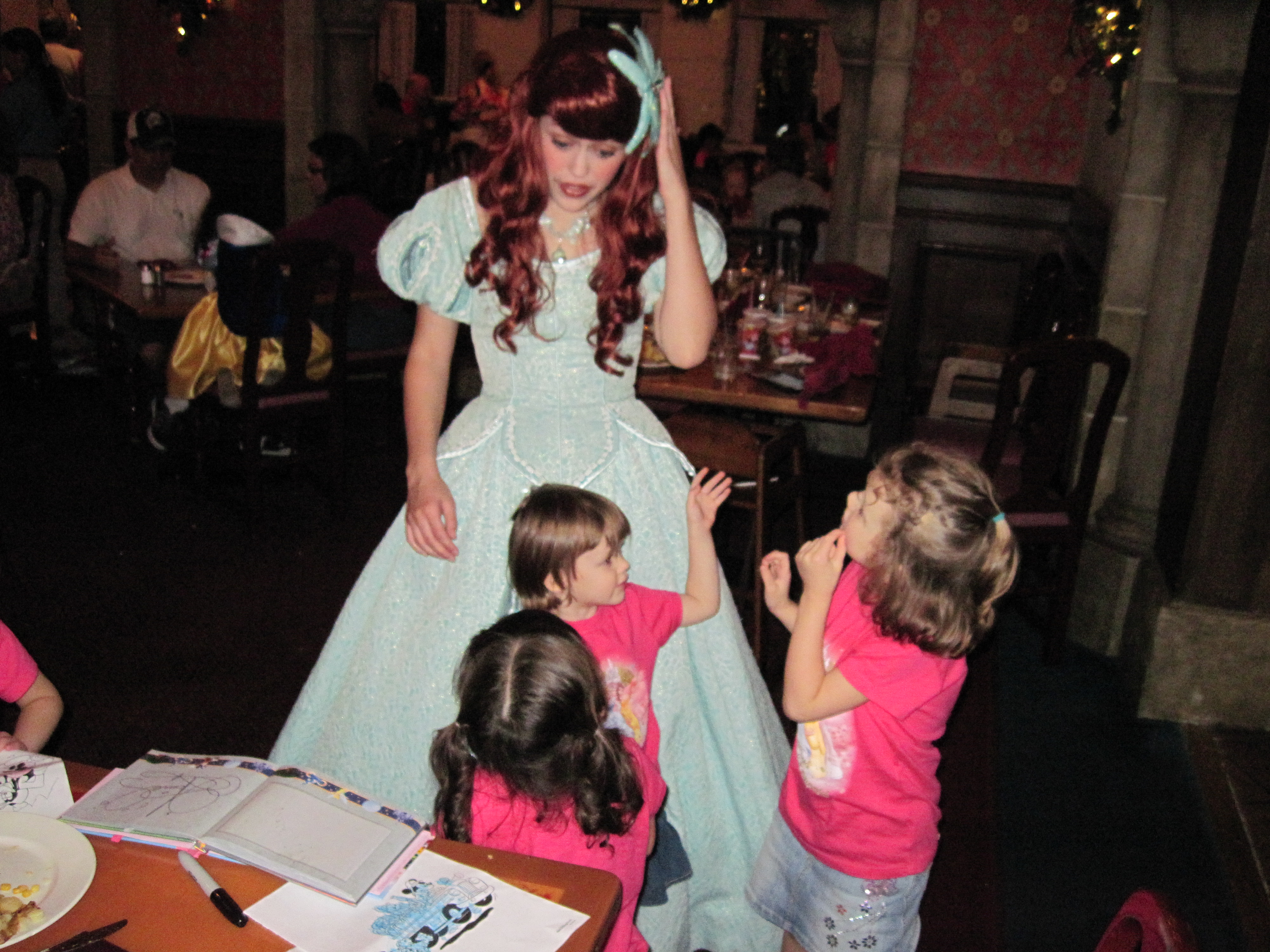 - Akershus Royal Banquet (B,L,D) @ Epcot – Belle (yellow ball gown) – she is almost always here to greet you, Aurora, Cinderella, Ariel, Snow White, Jasmine, Mulan (very rarely)