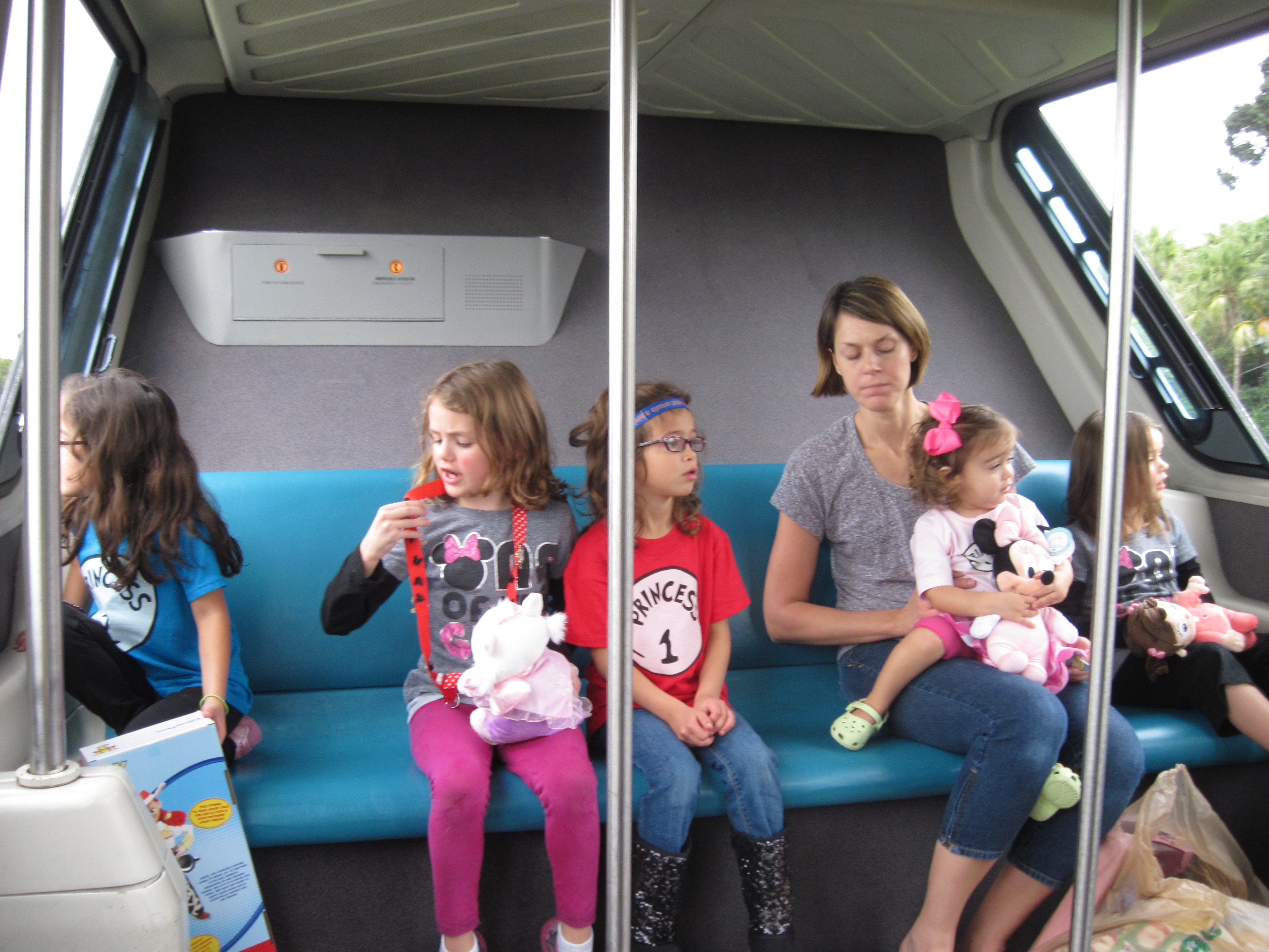 would recommend taking the monorail to visit the resorts or between Epcot & Magic Kingdom. It is a fun, quiet ride in the air conditioning. Sleeping kids can stay in strollers and you can just ride around in circles if you choose. If you have dining reservations at one of the monorail hotels, you can hop of the monorail for a ride after your meal and see the sights.